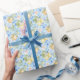 Mediterranean lemon floral design in a blue yellow white palette with tile-inspired details. Blending French and Italian charm, it adds a fresh, elegant touch to your gift wrapping for any occasion.