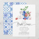 Watercolor Mediterranean Blue Tiles Pink Floral Bridal Shower Invitation