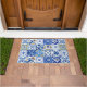 Imagine stepping onto this doormat and being transported to the vibrant streets of Italy, where the sun is always shining and the flowers bloom in abundance. The bold hues of blue, yellow, and white come together in a mesmerizing watercolor effect, creating an intricate yet airy pattern that will instantly catch your eye.