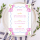 Set the scene for a La Dolce Vita-inspired feast with this hand-drawn Mediterranean wedding menu card. Featuring whimsical, magenta pink bougainvillea florals, a playfu blue l wavy border, and elegant script yellow and pink typography, this design is the perfect blend of Italian charm and effortless sophistication. Ideal for Amalfi Coast weddings, garden receptions, and citrus-themed celebrations, this vibrant stationery adds a touch of coastal elegance to your tablescape. Personalize with your menu details for a bespoke dining experience your guests will adore!