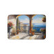 Bath mat featuring a painting of the Italian coast with terra cotta flower pots.