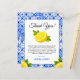 Mediterranean Wedding Theme - Budget Mediterranean Italian Blue Tile Lemon Wedding Thank You Card!