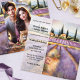 A romantic Mediterranean wedding invitation featuring a painting of a country scene with lavender farm and cypress trees. On the back is space for your custom photo and also a QR code template is available to link to your website.