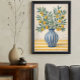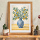 Bring a touch of Mediterranean charm to your space with this elegant hand-drawn botanical illustration. This artwork features delicate lemon branches with lush green leaves arranged in a classic blue striped ceramic vase, creating a warm and rustic still life composition.