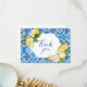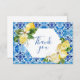 Elegant modern watercolor Lemon floral Blue Tile thank you card.