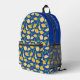 Colourful citrus fruit, lemon pattern personalized backpack.  Add your name or or choice of text.  Matching items available.  Original art from artists own illustrations. Please use the message me button below for help with further customization and special requests.  © Zoe Chapman Design