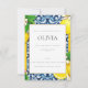 Personalize this Amalfi Coast mediterranean lemon tiles bridal shower card with your own wordings easily and quickly, simply press the customise it button to further re-arrange and format the style and placement of the text.