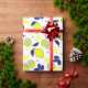 Mediterranean Navy Blue Yellow Lemons Pattern Wrapping Paper