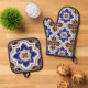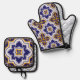 Mediterranean Pattern Kitchen Oven Mitt & Pot Holder Set