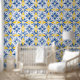 Mediterranean Pattern Tile Room Blue Yellow Wallpaper