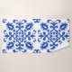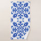 Elegant blue and white Portuguese ceramic tile featuring a central round medallion and simple round floral ornaments in each corner. Inspired by classic Lisbon tilework, this clean and timeless design is perfect for customization — ideal for names, dates, or meaningful phrases.