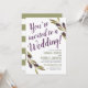 A set of elegant wedding invitations featuring painted style Mediterranean olives. The words "You're invited to a wedding" frame the front of the invitation along with your wedding details underneath it. On the reverse side are white and sage green stripes. All Individual elements of this invitation are customizable (including the bold statement text) simply use the customization function. Enjoy creating and making it your own!