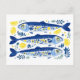 Mediterranean Summer Blue and Yellow Sardines Postcard
