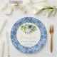 Watercolor blue yellow floral lemon bridal shower paper plates.