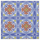 This fabric can be customized for a larger or smaller tile pattern using popular colours of light blue, royal blue, yellow and brick.