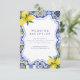 Celebrate your special day with this cute Mediterranean-style wedding design, featuring traditional Italian tiles adorned with vibrant lemons and lush greenery. Perfect for a rustic, coastal, or Amalfi-inspired wedding, this elegant design captures the charm of Southern Italy with its intricate patterns and fresh citrus elements. Fully customizable with your wedding details, this cute Italian design adds a touch of Tuscan romance to your celebration. Ideal for destination weddings, summer ceremonies, and Italian-themed receptions. For complementary products please see the collection of this design.