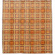 Geometric shapes in orange, blue, black, and golden tan on a cream background resemble vintage Mediterranean tiles. Very elegant!