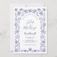 Simple and minimalist modern floral line art in navy blue on a white background for a Mediterranean feel. Back features a matching flower pattern. Original art by Nic Squirrell. Change the text to personalize.