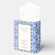 Inspired by traditional Italian patterns, this blue and white design was originally hand-drawn and is therefore exclusive to our store. This allows you to effectively brand your wedding in a stylish and classy manner, drawing from the traditional Mediterranean aesthetic. Whether your wedding is in Italy, Greece, or you simply want to infuse this essence into your celebration, our Sicilian-style wedding favour boxes are tailored for just that . They are fully customizable, allowing you to personalize them to suit your wishes. To get started, simply click on 'Personalize this template.' You can also choose the colour of the bow from four available options. If you're searching for matching wedding decor within this theme, explore our full collection – an easy and enjoyable way to prepare all the lovely details for your special day.