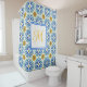Mediterranean Yellow Blue Monogram Shower Curtain