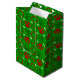 Medium glossy green Christmas gift bag with red and green dog paws and white bones.