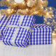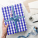 A wrapping paper designed with a royal blue and white gingham pattern in medium size.