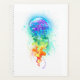 Grande méduse irisée, artistiquement dessinée, brillante, avec de longues tentacules sur le blanc, peinte sur l'arrière - plan multicolore. Méduse arc-en-ciel.