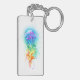 Grande méduse irisée, artistiquement dessinée, brillante, avec de longues tentacules sur le blanc, peinte sur l'arrière - plan multicolore. Méduse arc-en-ciel.
