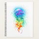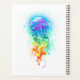 Grande méduse irisée, artistiquement dessinée, brillante, avec de longues tentacules sur le blanc, peinte sur l'arrière - plan multicolore. Méduse arc-en-ciel.