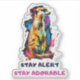 A meerkat sticker typically features this small, curious mammal with its distinctive upright posture, large dark eyes, and pointed ears. The design may show the meerkat standing on its hind legs, scanning the surroundings for danger, or interacting with its group in a playful or alert manner. Known for their social structure and constant vigilance, meerkats are often depicted in groups, reflecting their cooperative and energetic nature. Whether realistic or stylized, the sticker captures the meerkat's endearing and inquisitive personality, making it perfect for animal lovers, wildlife enthusiasts, or anyone who enjoys the charm of this iconic desert dweller.