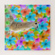 Pictured on a multi coloured blossom background a meerkat keeps watch