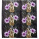 Featured in front of three purple Daisies is a pretty Meerkat.