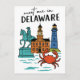 Step into history with this charming 'Meet Me in Delaware' postcard, featuring a delightful collection of Delaware icons in a fun doodle style! This whimsical illustrated postcard captures the state's rich historical significance and beautiful coastline. It showcases everything from a tribute to Caesar Rodney and the Old State House to a classic lighthouse and, of course, the famous blue crab. The playful illustrations and clear lettering make this postcard a unique and memorable tribute to Delaware, USA.