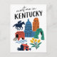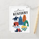 Plan your next adventure with this charming 'Meet Me in Kentucky' postcard, featuring a delightful collection of Kentucky icons in a vibrant doodle style! This whimsical illustrated postcard captures the essence of the Bluegrass State, showcasing everything from exhilarating horse racing and grand capitol buildings to picturesque covered bridges and natural arches. The playful illustrations and clear lettering make this postcard a unique and memorable tribute to Kentucky, USA.