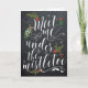 A quirky typography Christmas card with chalkboard effect background and Christmas/seasonal graphics. "Meet me under the mistletoe". A quirky and whimsical style.
