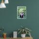 Animale Parade Attention à l'Ours de Panda L'affiche personnalisée de la chambre présente notre art original d'un mignon personnage d'ours de panda debout dans une forêt ombragée de bambou avec un ciel texturé jaune et vert avec un soleil jaune pâle avec une bordure ondulée vert foncé peinte par notre talentueux artiste pour enfants, Traci Van Wagoner. Au-dessus du mignon panda géant, se trouve votre nom personnalisé (n'oubliez pas de personnaliser) avec les mots en blanc, Attention à l'ours panda ! Parfait pour les amateurs de panda-ours de tous âges. Décorez la chambre de votre enfant, la crèche ou la chambre de votre dortoir avec ce poster amusant de chambre de garde.