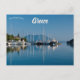 This postcard features a photograph of a view of boats in a harbour in Meganisi,Greece. Photo credit: Jeremy Stewardson, 2021.