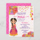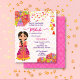 Mehndi cute Indian henna bride with pink and yellow umbrellas and tassels budget Invitation template instant download.