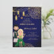 Mehndi Henna Islamic wedding invitation with a blonde henna bride and groom, Moroccan lanterns, navy blue and gold