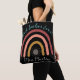 Sac fourre-tout d'appréciation personnalisé de l'enseignant qui comprend un arc-en-ciel couleur boho et un soleil pâle qui se balade sous l'arc-en-ciel, le très mignon "meilleur enseignant jamais" et le nom ou monogramme de l'enseignant