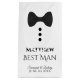 Ce sac cadeau est conçu pour votre Best Man. Le design comporte du texte noir et une cravate noire avec des boutons sur un arrière - plan blanc. Inclut un espace pour son nom ainsi que le nom du couple et la date du mariage. Remplir avec des cadeaux, des faveurs, des bonbons, de l'alcool, ou toute autre sorte de swag mariage. Excellente façon de le remercier d'avoir fait partie de votre fête de mariage.