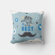 Coussin extérieur bleu vif avec des coeurs, des nuages, et "Mon père est le meilleur" texte. Une touche amusante et aimante pour patios, porches ou cadeaux de Fête des pères.
