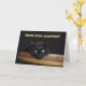 Cette carte de Fête des pères spécialement pour Stepdads présente mon chat noir, Ranger, allongé sur une table en bois avec sa tête drapée sur le côté. Cette belle chatte noire aux grands yeux verts et une expression sérieuse, mais comique, rend cette carte parfaite pour chaque Stepdad. Le message sur cette carte jours, "Vous voulez savoir quelque chose ? Tu es la MEILLEURE Stepdad ! Bonne Fête des pères !"