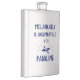 The product is a good size and came exactly as it was pictured. The lid is not attached to the flask, which could be dangerous on drunken nights... The print came out surprisingly well and looks very sharp. Would definitely recommend.
