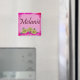 Personnalisé avec le nom Melanie sur un arrière - plan rose avec marguerites.