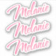 Melanie name in pretty pink decorative cursive font lettering. Three copies.