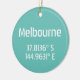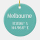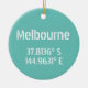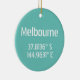 Modern keepsake with Latitude and longitude map coordinates for Melbourne Victoria Australia in white modern urban font on aqua background