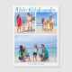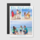 Chic customizable beach family photo collage Christmas magnet card with your favourite tropical photos in the sun and a letter inside. Add 3 of your favourite memories from your island vacation to the coast on the front and one on the back. A beautiful coastal holiday magnetic card with a clean, modern photograph layout and pretty blue script.