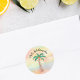 These Mele Kalikimaka Stickers are decorated with a hand painted palm tree decorated with lights and baubles on a watercolor background.