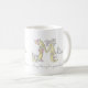 Decorative hand drawing of a capital M letter with your name and meaning mug. Pretty heart and flower doodled design and the words Melissa Royal honey bee, passionate and sweet. © Unique art design and name meaning description by Sarah Trett. www.sarahtrett.com for www.mylittleeden.com on zazzle